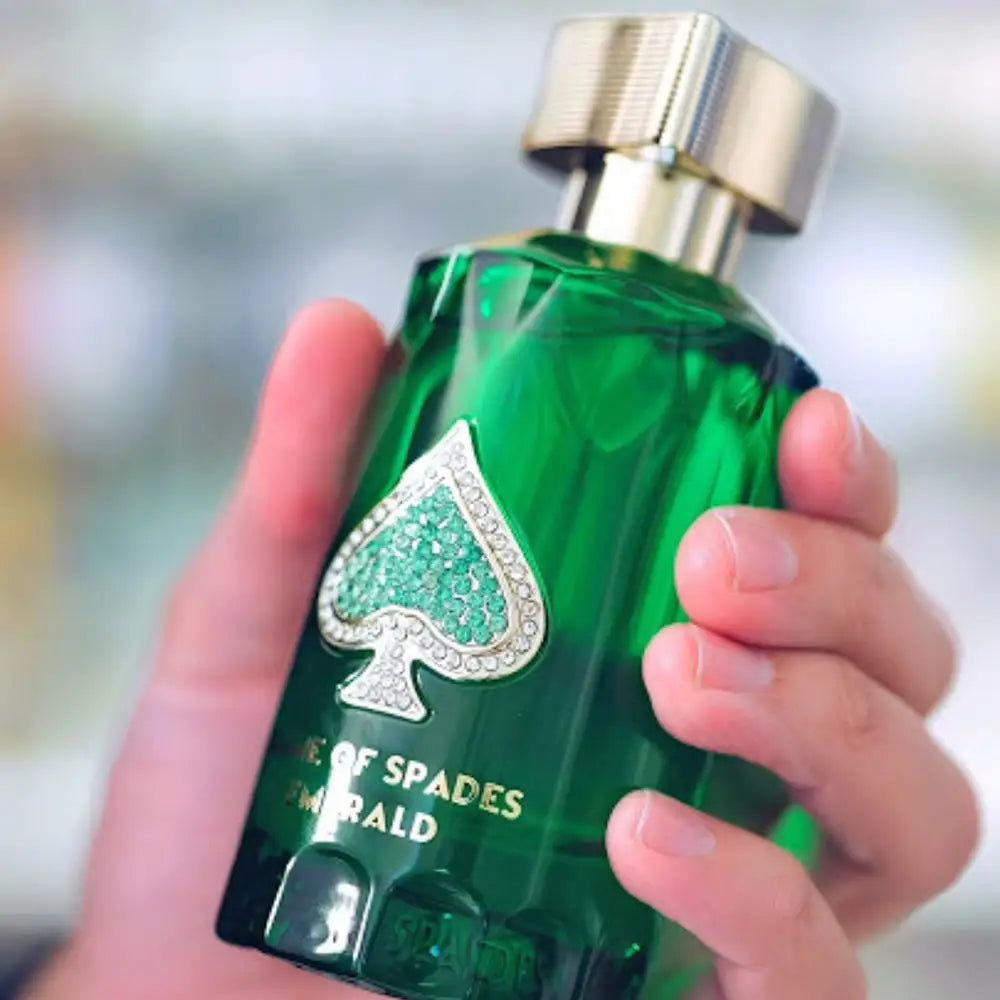 Un aroma burbujeante y sofisticado que transmite frescura con personalidad. Game Of Spades Emerald combina cítricos chispeantes y un toque especiado de jengibre, sobre una base limpia y musgosa, para quienes buscan distinción con un perfil vibrante y moderno.